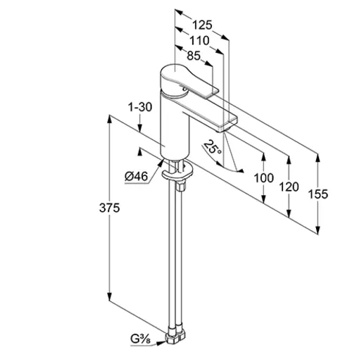 Miscelatore monocomando per lavabo KLUDI ZENTA SL, altezza bocca 100 mm, senza scarico, EcoPlus