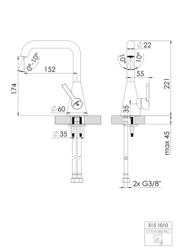 Miscelatore monocomando per lavabo Steinberg Serie 315, senza scarico, sporgenza 152 mm, altezza 221 mm