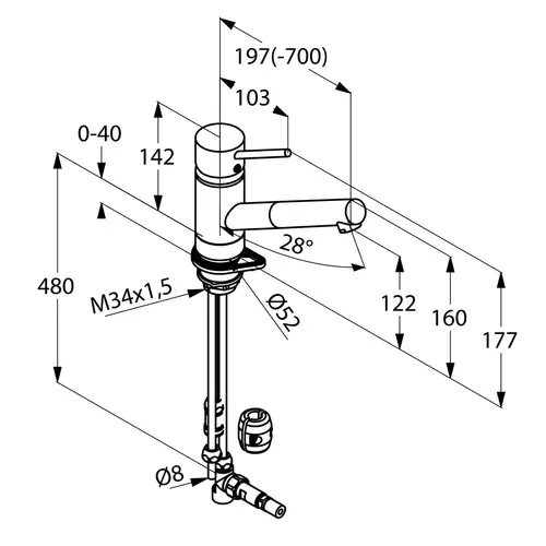 Miscelatore monocomando per lavello KLUDI SCOPE, leva chiusa, bassa pressione, Eco, con bocca estraibile, cromato