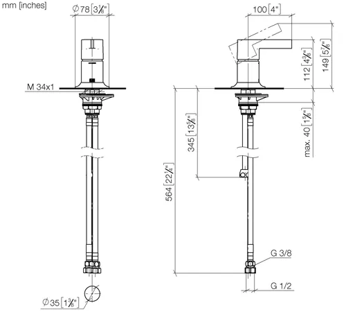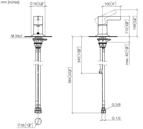- 1 miscelatore monocomando per vasca da bagno per installazione a bordo vasca o bordo piastrelle