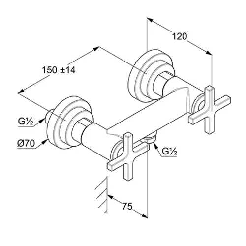 Miscelatore per doccia KLUDI NOVA FONTE CLASSIC, a parete, con maniglie a croce, cromato