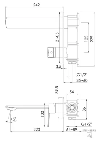 Miscelatore per lavabo a parete Steinberg Serie 342, set premontato, sporgenza 220 mm