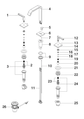 Miscelatore per lavabo a tre fori Dornbracht IMO, con set di scarico, sporgenza 165 mm