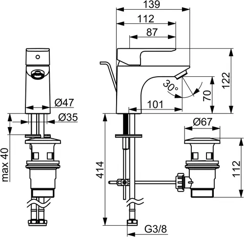 Miscelatore per lavabo HANSA HABASIC, con set di scarico, sporgenza 101 mm, cromato
