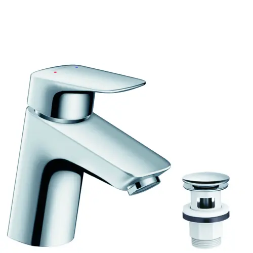 Miscelatore per lavabo hansgrohe Logis, ComfortZone70, per bassa pressione, scarico push open pop-up, sporgenza 107 mm, cromo