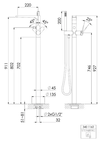 Miscelatore per vasca Steinberg Serie 340, a libera installazione, da incasso, sporgenza 220 mm, altezza 927 mm