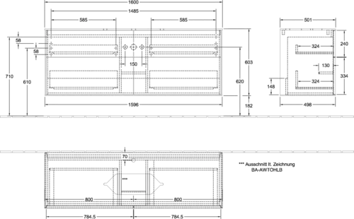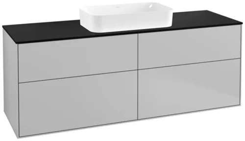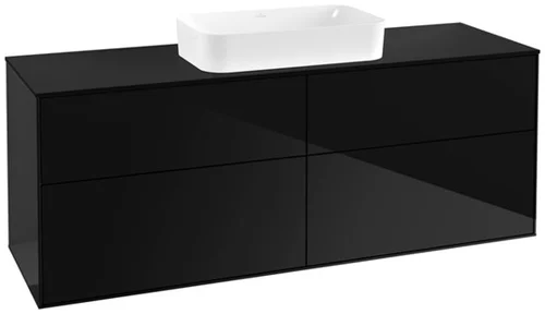 Mobile sottolavabo Finion di Villeroy & Boch, 4 cassetti, con foro per rubinetto, 1600x603x501 mm, vetro Matt Black