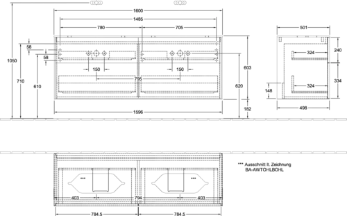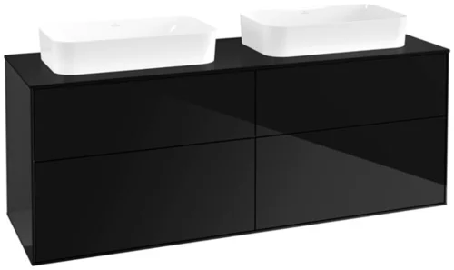 Mobile sottolavabo Finion di Villeroy & Boch, 4 cassetti, per 2 lavabi, senza foro per rubinetto, 1600x603x501mm, Glass Matt Black