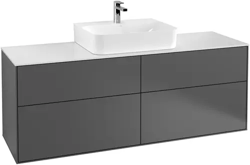 Mobile sottolavabo Finion di Villeroy & Boch, con illuminazione, centro lavabo, 1600x603x501 mm, vetro Matt Black
