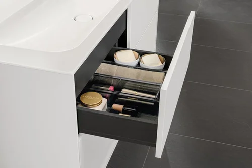 Mobile sottolavabo Villeroy & Boch, 2 cassetti, con illuminazione, centro lavabo, con foro per rubinetto, 800x603x501 mm, Glass Matt Black
