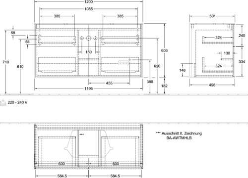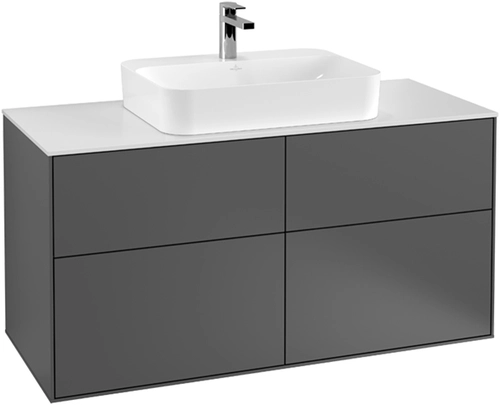 Mobile sottolavabo Villeroy & Boch, 4 cassetti, con illuminazione, centro lavabo, 1200x603x501 mm, Glass Matt Black