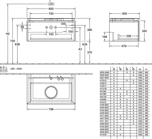 - Combinabile con: Architectura 5A25 45/46, 5A26 60/61, 5A27 60/61, Artis 4179 43, 4198 61, 4172 58, 4178 41, Collaro 4A18 40, 4A21 38, 4A19 56, 4A20 56, Finion 4143 61, Loop & Friends 4A45 00/01, 4A46 00/01, 4A47 00/01, 4A48 00/01, 4A49 00/01, 4A50 00/01, My Nature 4110 80/60, ordinare separatamente i lavabi definiti