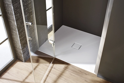 - massimo comfort in piedi grazie al coperchio di scarico piatto e smaltato, montato a filo della superficie della doccia