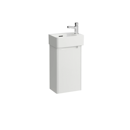 Set completo LAUFEN 340, lavandini VAL, 1 foro per rubinetto a sinistra, con troppopieno, incl. mobiletto JUNA, 1 anta a destra, 340x220x635mm