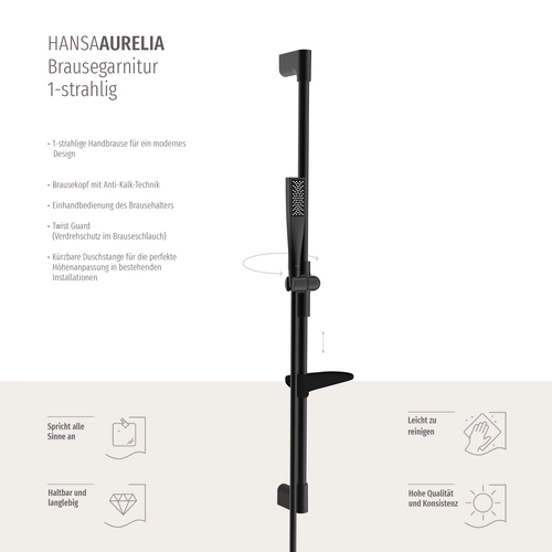 • composto da: doccia a mano, flessibile doccia (1750 mm), protezione antitorsione, protezione antitorsione per flessibile doccia