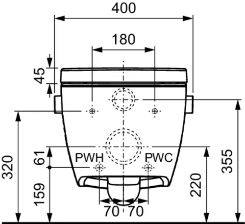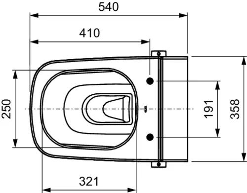 - tecnologia pre-fissaggio: fissaggio del sedile del WC stampato in fabbrica per un sedile e un coperchio privi di oscillazioni (compatibile con tutti i sedili del vaso bidet TECE)