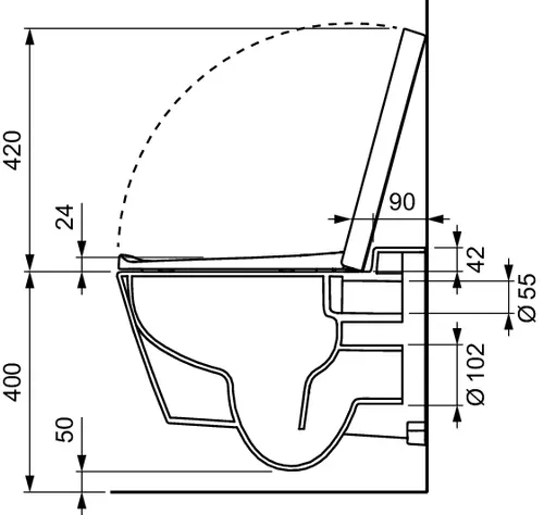 - Impedisce gli schizzi, ad esempio da parte dei bambini piccoli, grazie all'estensione del sedile nella parte anteriore interna.