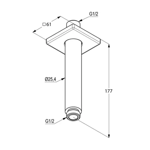 Uscita a soffitto KLUDI A-QA, per soffione a disco, sporgenza 150 mm, con rosone scorrevole 61 x 61 mm, cromato