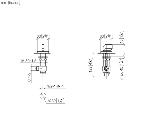 Valvola laterale Dornbracht CL.1, chiusura a destra, fredda, con struttura Wave