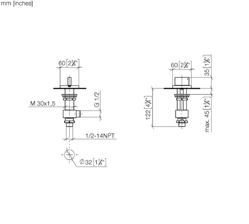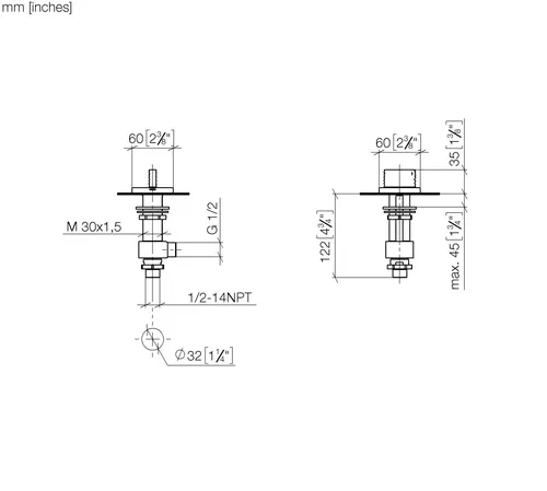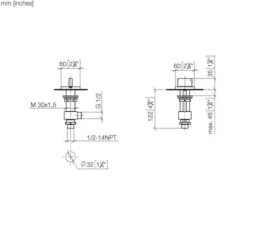 Valvola laterale Dornbracht CL.1, chiusura a sinistra, calda, con struttura Wave