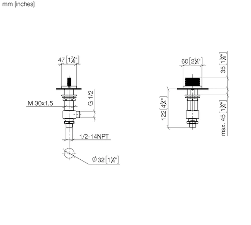 Valvola laterale Dornbracht CL.1, chiusura a sinistra, caldo 1/2, con struttura CASCADE