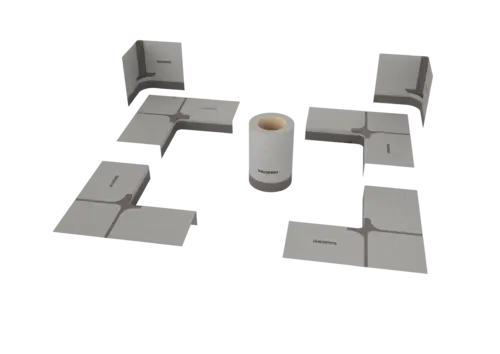 - die Komplettlösung für das rundum sichere Abdichten bodenebener Duschen für fast alle Standardeinbausituationen.