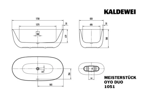 Kaldewei MEISTERSTÜCK OYO DUO Mod. 1051-4035, freistehende Badewanne, 1730x820mm, ohne Überlauf