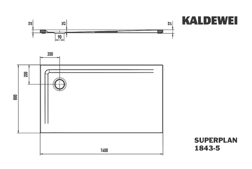 Kaldewei SUPERPLAN 1843-5, Douchebakken met extra platte houder, 140x80cm
