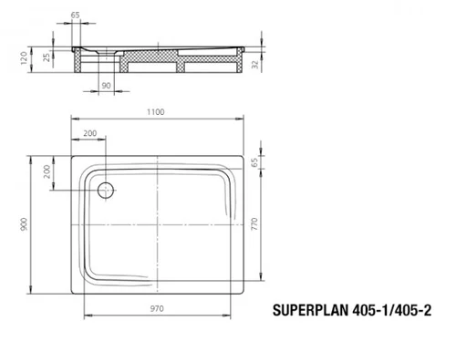 Kaldewei SUPERPLAN CLASSIC 405-2 90x110cm mit Styroporträger