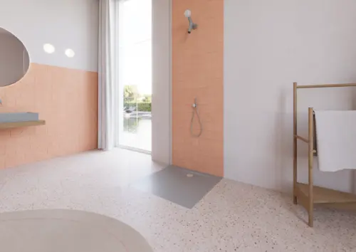 - besonders wandnaher Ablauf und gleichmäßiges Gefälle für eine durchgehend ebene Standfläche