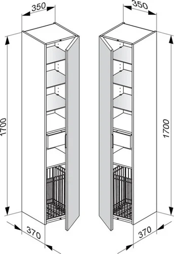 KEUCO EDITION 11 Hochschrank, 1-türig, Anschlag links, 1 Wäschekorb, 350x1700x370mm
