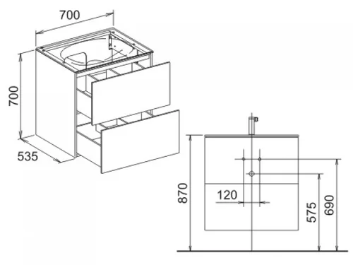 KEUCO EDITION 11 Waschtischunterschrank, 2 Frontauszüge, 700x700x535mm