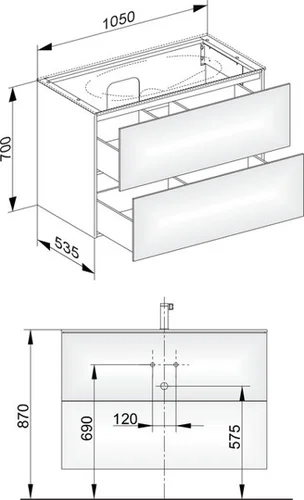 KEUCO EDITION 11 Waschtischunterschrank, 2 Frontauszüge, mit LED-Innenbeleuchtung, 1050x700x535mm