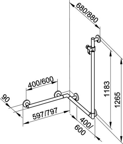 KEUCO PLAN Care Duschhandlauf mit Brausestange, Breite 797mm, Tiefe 680mm, Höhe 1265mm