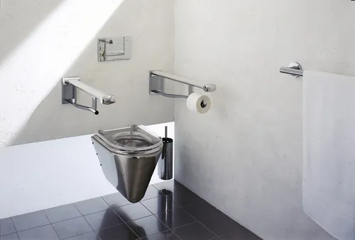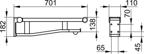 KEUCO PLAN Care folding support handle, with toilet roll holder, 700mm