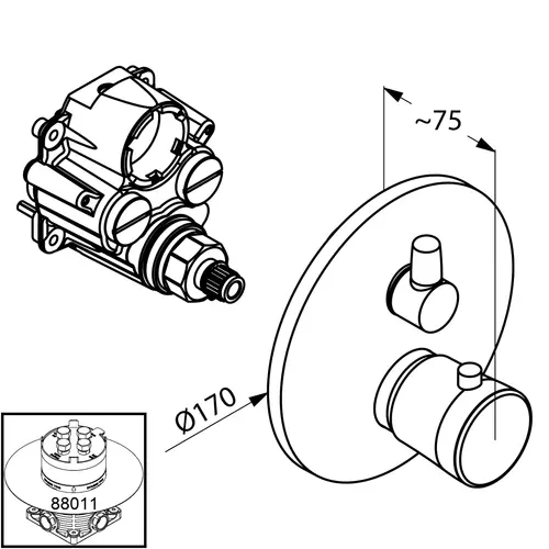- 1 x mezclador termostático empotrado para bañera y ducha