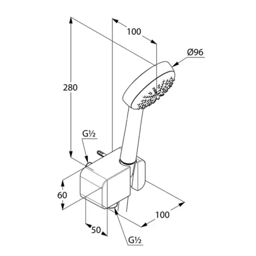 Set doccia 1S KLUDI LOGO, con un tipo di getto, gomito per attacco a parete con supporto doccia, cromato