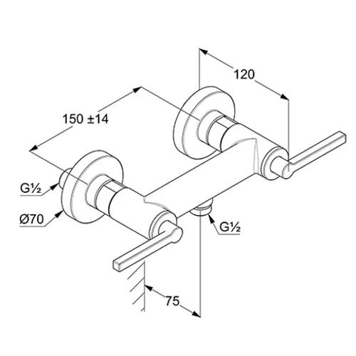 KLUDI NOVA FONTE PURISTIC Waschtisch-Brausearmatur, Wandmontage, mit Flügelgriffe