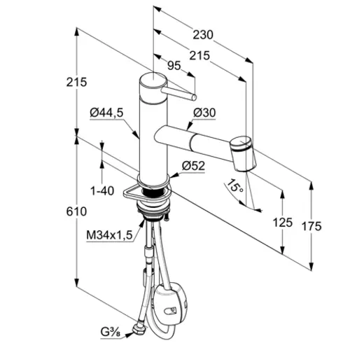 - Rociador de vajilla: grifo mezclador con rociador extraíble y conmutable de chorro normal a chorro de ducha