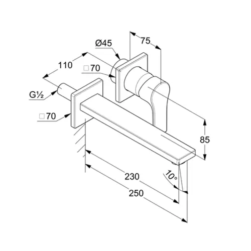 KLUDI ZENTA SL Mitigeur monocommandé mural encastré pour lavabo à deux trous, saillie 230mm, rosace en deux parties, chrome