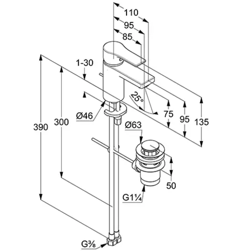 KLUDI ZENTA SL Mezclador monomando de lavabo, altura de caño 75 mm, EcoPlus
