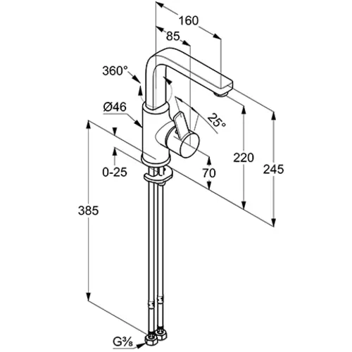 KLUDI ZENTA Mitigeur monocommandé pour lavabo, hauteur d'écoulement 220mm, pivotant, sans garniture d'écoulement, chrome