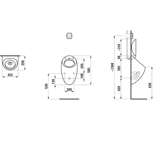 LAUFEN Alessi one Absauge-Urinal, 1 Ltr., mit Löcher für Deckelmontage, ohne Fliege, 325x290mm,