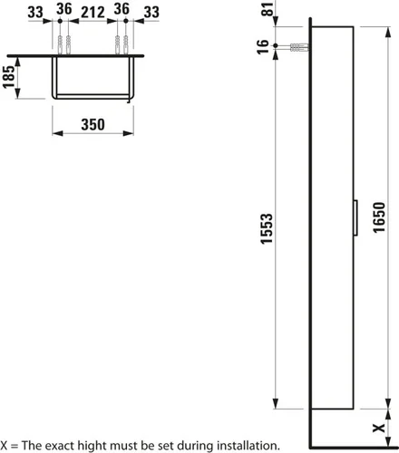 - Breite: 350 mm, Tiefe: 185 mm, Höhe: 1650 mm