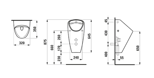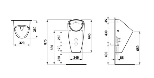 LAUFEN Caprino Plus Absauge-Urinal, L/B/H: 320/350/645 mm, ohne eletrische Steuerung