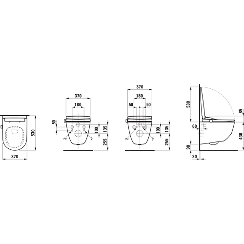 LAUFEN Cleanet Pro Lite Wand-WC, Dusch-WC Aufsatz Lite ohne Fernbedienung, spülrandlos, Tiefspüler 4/2 l., 370x530mm