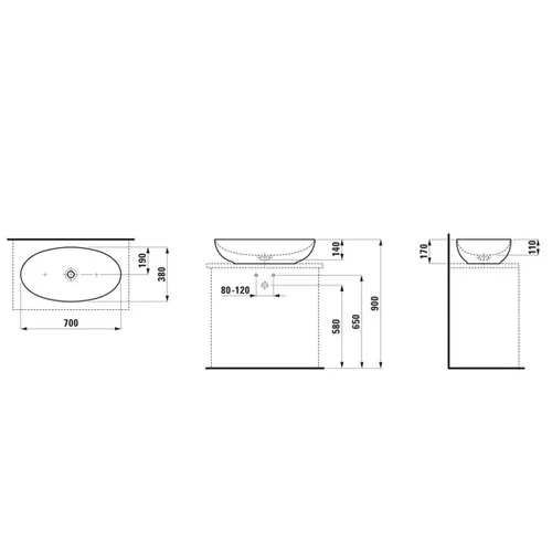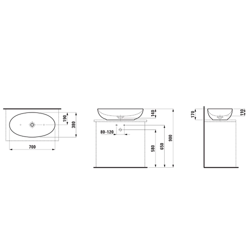 • Width: 700 mm, Depth: 380 mm, Height: 170 mm