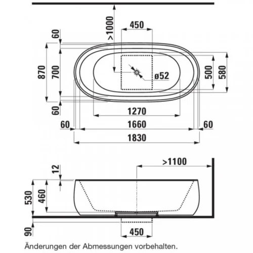 - Hinweis: Wanne liegt nicht bündig am Boden auf (Bodenfreiheit ca.1cm)