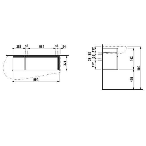 LAUFEN ILBAGNOALESSI Waschtischunterbau, Siphonausschnitt links, 995x320x440mm, 1 Schublade