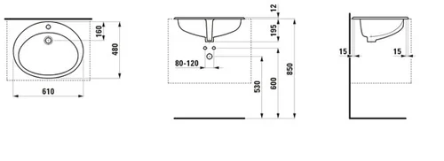 LAUFEN Indova Einbauwaschtisch, von oben, mit Armaturenbank, 1 Hahnloch, mit Überlauf, 610x480mm